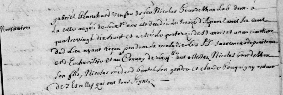 Gabrielle Blanchard (ca 1638-1698) , x Nicolas Bourdelhon (✝ av 1688)- 1 Nicolas Bourdelhon (1665-1721) , x 1688 Anne Burtel (1666-1691)
