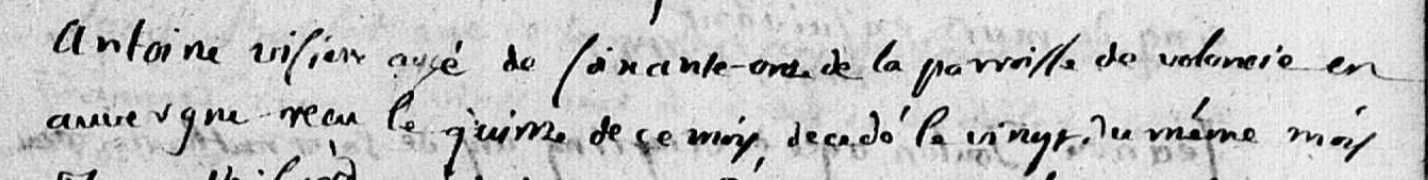 Antoine Visière, est né vers 1683. Il est décédé le 20 mars 1743 à Beaufort-en-Vallée - Hôtel-Dieu (Maine-et-Loire) (3).