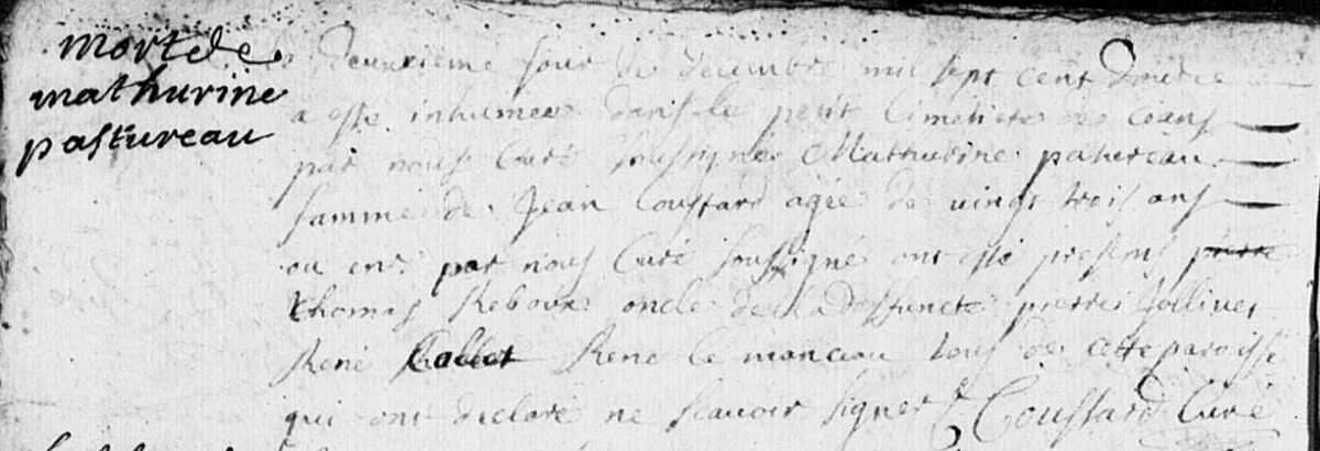 (3) Inhumation le 2 décembre 1712 à Saint-Lambert-la-Potherie