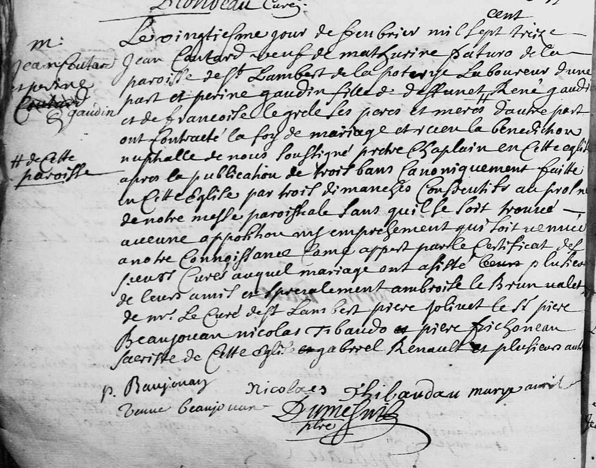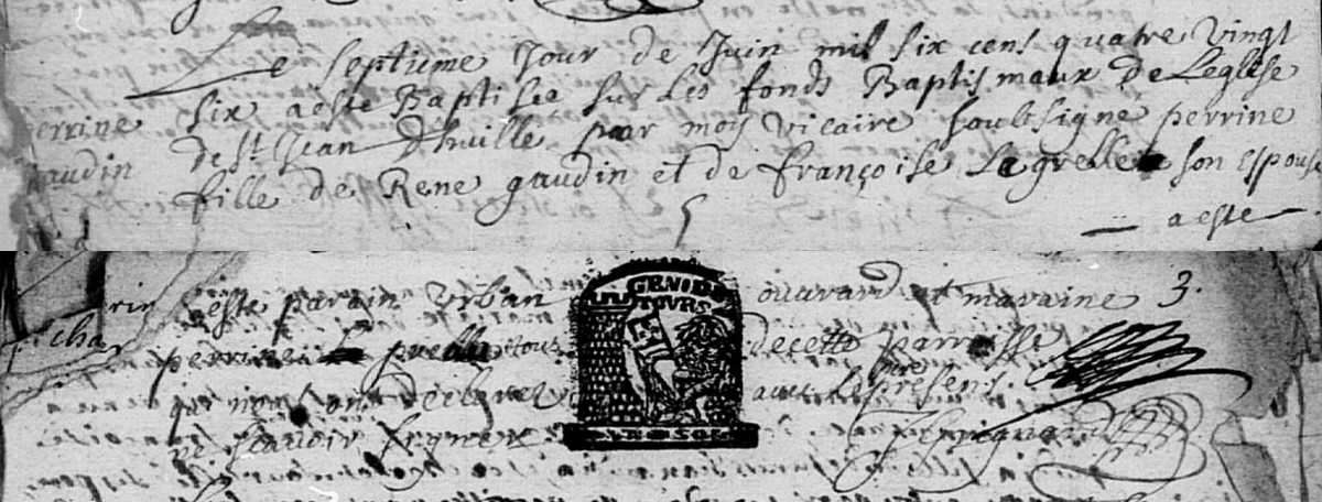 Perrine Gaudin (1686-1742) , x 1713 Jean Coutard (✝ av 1742)- 1 Perrine Coutard (1715-1780) , x 1742 Charles Banchereau (ca 1703-1763)
