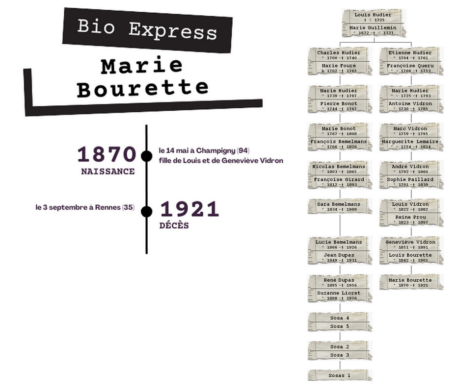 Soyons honnête et rendons à César ce qui est à César. Merci donc à Geneastar pour m’avoir permis de découvrir cette lointaine cousine. Je suppose que tous les abonnés de Geneanet connaissent ce site qui propose les généalogie de célébrités. Je suppose également, que tout comme moi, poussé par la curiosité, il y a eu une recherche de cousinage. De mon côté, j’ai obtenu une liste de 39 personnes avec lesquels mes enfants ont un/une ancêtre en commun. Je dois avouer que je n’en connaissais pas les 3/4, ce qui peut donner une idée de mon niveau de culture générale, ou alors, la notion très personnelle que j’ai du mot «star». Y figure parmi ces 39 individus, Marie Amélie Bourette, qualifiée d’empoisonneuse! Là sur le coup, ce n’est pas très courant. En effet, à l’exception de Violette Nozière et de Marie Besnard, j’ai quelques lacunes concernant les utilisatrices de poisons. J’ai alors regardé sur le net ce qu’il en était à propos de Marie et je me suis aperçu que la dame avait quand même une certaine notoriété avec une pléthore d’articles de journaux la concernant sur Gallica ainsi qu’une page Wikipédia.