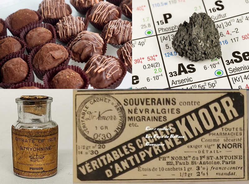 Des chocolats à la crème, de la strychnine, de l’arsenic et une boîte portant le nom de Bourbonneux, célèbre pâtissier de Paris, tels sont les éléments dont va se servir Marie pour assouvir sa vengeance en septembre 1908. Elle retire le fond des chocolats, agrémente la crème avec les poisons, recolle le fond des chocolats, met les friandises dans la boîte et envoie cela à Charles. Manque de chance pour elle, mais pas pour lui, Marie a bâclé son ouvrage. Les fonds des chocolats se décollent et Charles trouve que la crème a un aspect bizarre. Il va trouver le confiseur, qui après lui avoir certifié qu’il ne vendait pas ce type de chocolats, l’incite à les faire analyser. Aussitôt dit, aussitôt fait, et le résultat des analyses indique une forte concentration en arsenic dans les friandises. Est-ce que cela inquiète Charles? Pas vraiment puisqu’ il omet de porter plainte et il oublie, le temps passant, cette mésaventure. Toutefois, ce n’est pas le cas de Marie, elle est persévérante et va tenter une autre approche. Début octobre 1909, elle dépose dans un des massifs du jardin de Charles un paquet de pharmacie. Dans ce dernier, il y a des cachets d’antipyrine, un médicament possédant entre autres des propriétés antinévralgiques, des têtes de camomilles, un sachet de sels de Vichy ainsi qu’un papier portant la note des différents produits. Bien évidemment, Marie a pris soin d’ajouter son fameux mélange arsenic/strychnine dans les cachets d’antipyrine ainsi que dans les sels. Le paquet est trouvé par l’épouse de Charles, mais celle-ci, pensant que c’est une erreur de livraison, le met de côté en attendant de le rendre à la pharmacie.