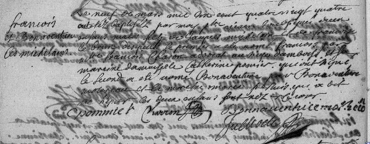 C’est à Saint-Denis-Hors, ancienne commune d’Indre-et-Loir rattachée à Amboise en 1946, que sont donc nés François, sosa 1502, et Bonaventure Michelin. Ils sont alors baptisés le 9 mars 1684 et sont les fils de Jacques, qui est soyer, et de Françoise Lebrun. Par la suite, François se mariera 2 fois, avec entre autre Françoise Michelin qui est la fille de son cousin germain. Ils auront alors 7 enfants, et les années passant, François décèdera à Saint-Denis-Hors à 67 ans. A l’image des frères Delafuye, je ne sais pas ce qu’est devenu le second jumeau, Bonaventure, n’ayant rien découvert sur lui pour le moment.