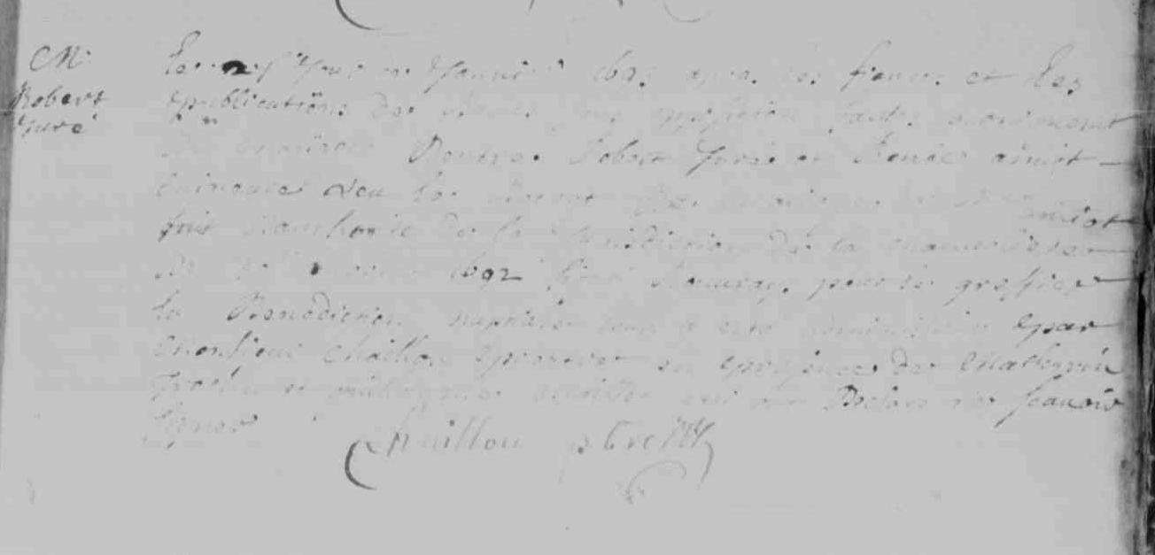 Robert Juré, est né vers 1659. Il a été inhumé le 13 février 1737 à Joué (Loire-Atlantique) (3).
