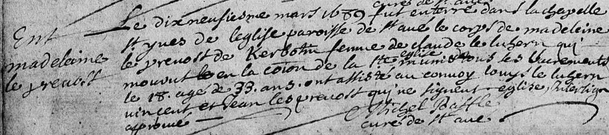 (2) Inhumation le 19 mars 1689 à Saint-Avé