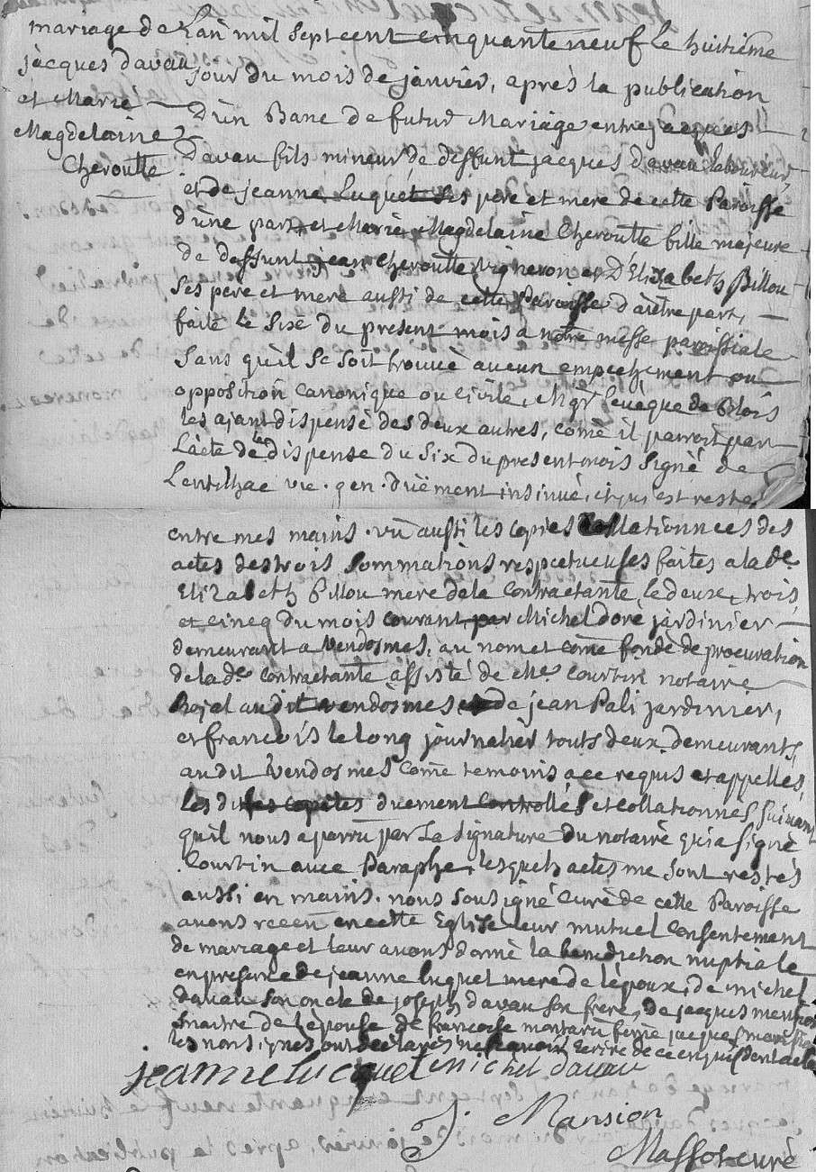 Marie Madeleine s'est mariée avec Jean Leroux (ca 1736-1781) le 30 juin 1772 à Averdon (Loir-et-Cher) (3)