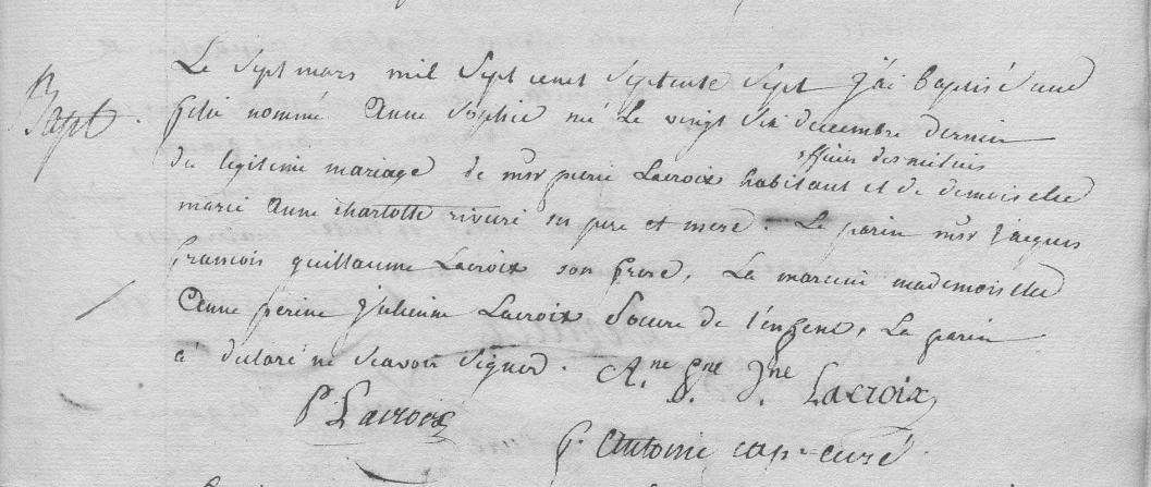 - Anne Lacroix, x 1785 Dominique Kair (ca 1764-1809)