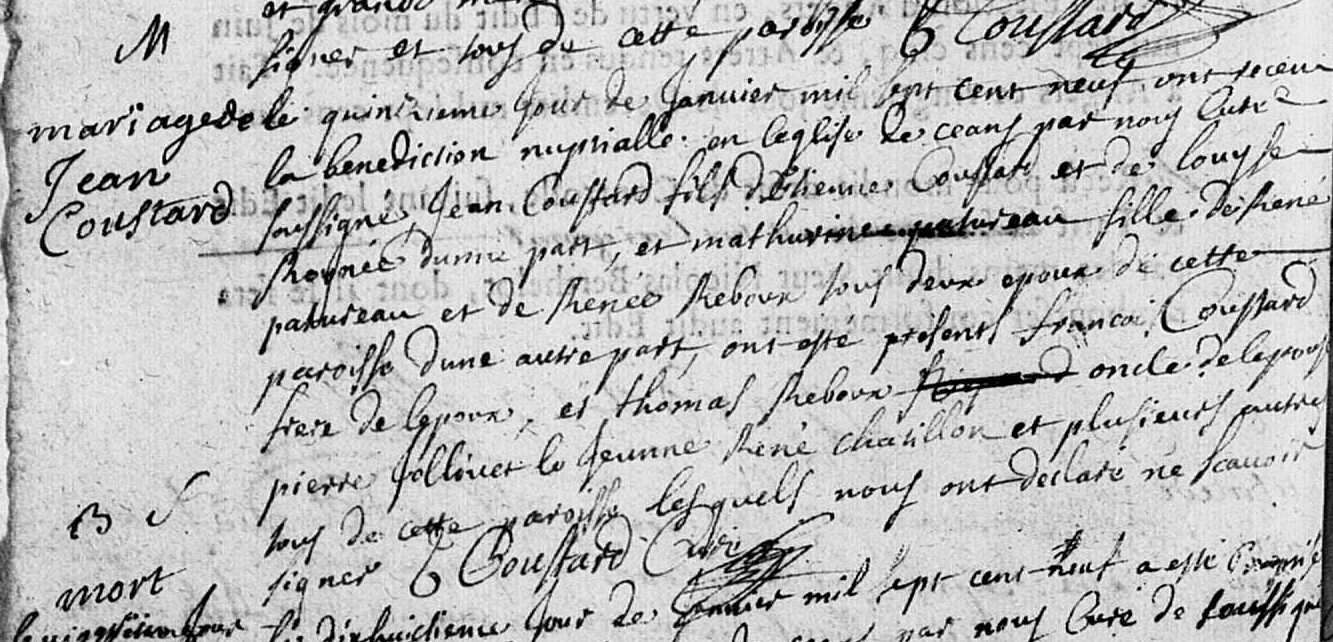 (2) Mariage le 15 janvier 1709 à Saint-Lambert-la-Potherie