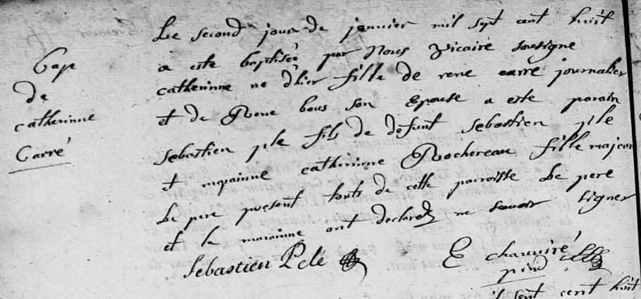 (1) Baptême le 2 janvier 1709 aux Rosiers-sur-Loire