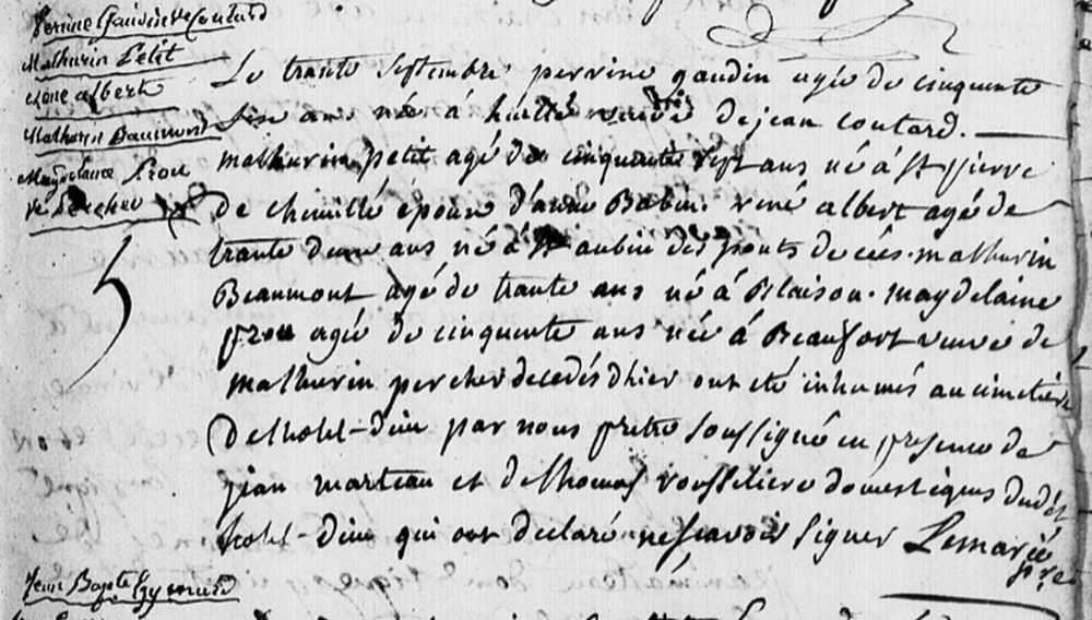 (3) Inhumation le 30 septembre 1742 à Angers
