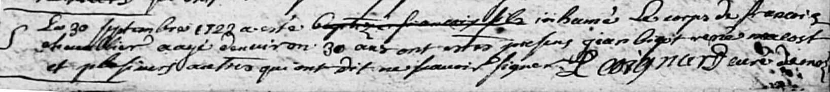 (2) Inhumation le 30 septembre 1723 à Mozé-sur-Louet