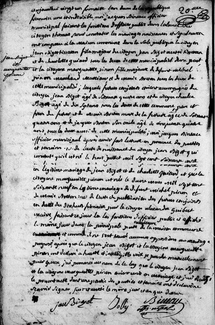 Marguerite Pinon (1769-1836) , ax 1793 Jean Bigot (1771-1794), bx 1795 Louis Coudrai (1773-1820)- 1a Louis Coudrais (1796-1796)