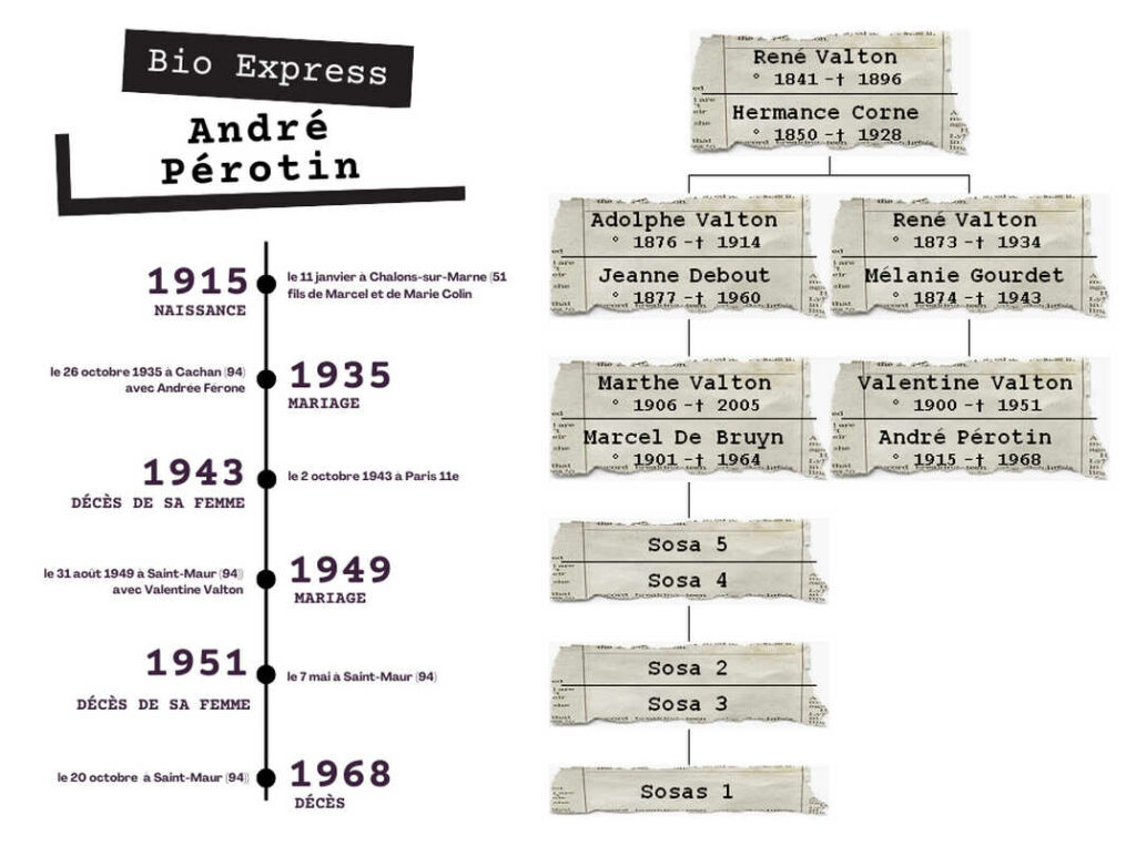 Marie Rose et Odette ont été incarcérées à la maison centrales de Rennes et c’est probablement à cet endroit qu’elles ont fait la connaissance de Valentine Valton qui y était détenue depuis quelques semaines. A la fin de la guerre, après leurs amnisties, elles ont dû rester en contact et c’est ainsi qu’André a fait la connaissance de Valentine, une des consœurs de sa mère de prison. Entretemps, celui-ci était devenu veuf, Andrée Férone son épouse, étant décédée quelques mois après son incarcération en octobre 1943 à l’hôpital Saint-Antoine. Michel, de son côté, a eu nettement moins de chance que les autres prévenus et on peut dire que dans son cas le proverbe cité au début de l’article a pris tout son sens. Détenu à la prison de Mantes, il y périt avec 209 autres compagnons de chaîne, lors du bombardement du 30 mai 1944, qui détruisit tout le bâtiment. Il se trouve dans la base des victimes civiles de la Seconde Guerre mondiale du site Mémoire des hommes.